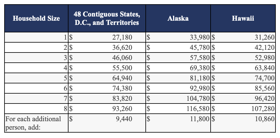 If your household income is equal to or below 200% of the Federal Poverty Guidelines (FPG) based on your state and household size, then you qualify for the Affordable Connectivity Program (ACP). Please refer to the table below for the income limits by household size, which are set at 200% of the 2022 FPG.